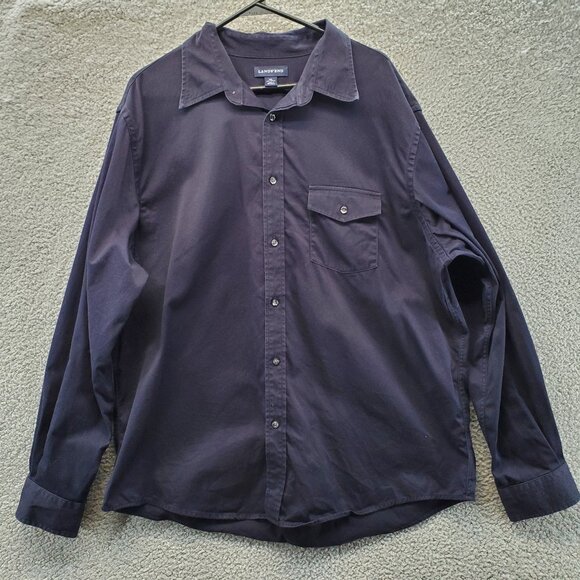Lands End Mens Long Sleeve Button Up Size XL 17-17 1/2 Blue Denim Shirt Pocket