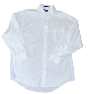 📌Lands’ End Men’s Long Sleeve Button-Down Shirt White 💯 Cotton Classic Dress XL