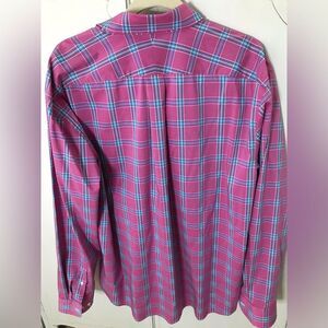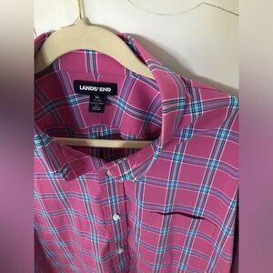 Lands’ End Men’s Long Sleeve Pink/Blue Plaid Pattern Button Down Shirt Size XL