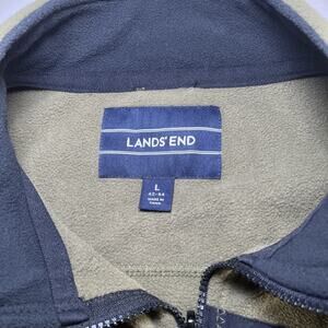 The product is a lot of 2 Lands' End men's fleece vests in gray and green colors, both size L. These full-zip vests are made of polyester fleece, making them lightweight and suitable for outdoor activities like walking, golf, or hiking. Each vest features three zip pockets and a collar for added convenience and style. The solid color pattern complements a variety of occasions, from casual outings to travel. Easy to care for, these machine washable vests are perfect for the winter, fall, and spring seasons, making them a versatile addition to any man's wardrobe.