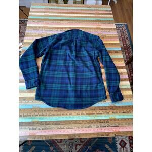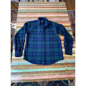 Lands' End Mens M Flannel Shirt Plaid Green Blue Tartan Plaid Button Up Heritage