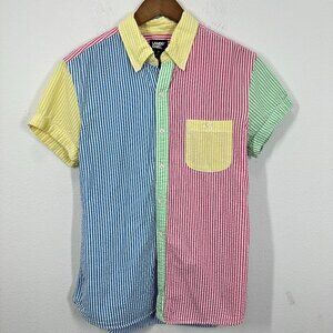 Lands' End Men's Medium Camp Shirt Colorblock Seersucker Summer Vibrant Beach