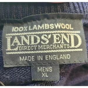 Lands' End Men's Navy 100% Lambswool V-Neck Vintage Sweater