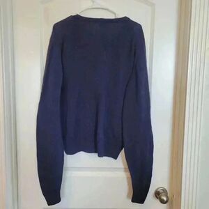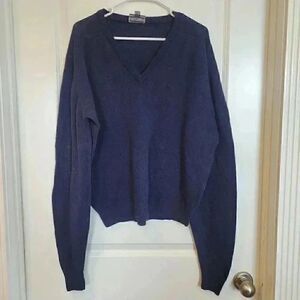Lands' End Men's Navy 100% Lambswool V-Neck Vintage Sweater USED sz XL Pit to pit 25 Length 25 Sleeve Length 29 see hole that was fixed on the front in photos.