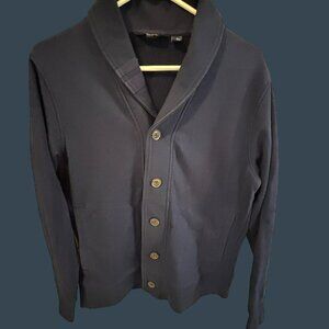 Lands End Men's Navy Blue Button-Up Cardigan Sweater W/Shawl Collar - S