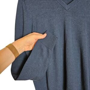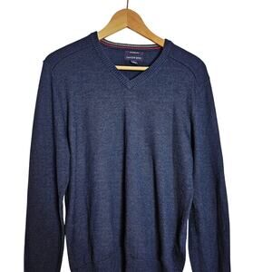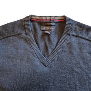 Lands End Mens Navy Blue Merino Wool Quiet Luxury V-Neck Preppy Sweater Size M