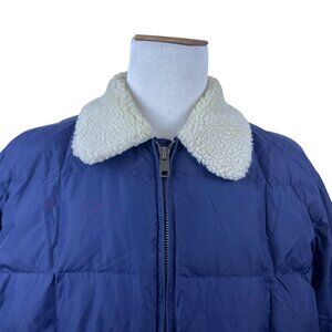 Lands End Mens Navy Nylon Sherpa Lined Jacket Puffer Style Snap Pockets Size L