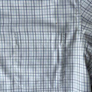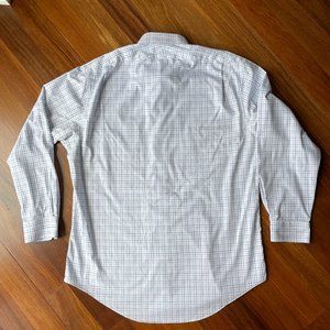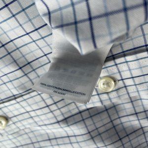 Lands' End Men's No Iron Supima Cotton White with Blue windowpane design Dress Shirt
