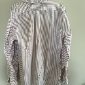 Lands’ End Men’s Oxford Stripe Button Down Shirt | Size 16-35 | White & Burgundy
