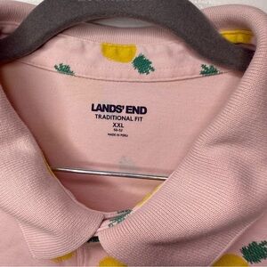 Lands End Mens Pink Traditional Fit Polo Shirt with Pineapple Print Size XXL GUC