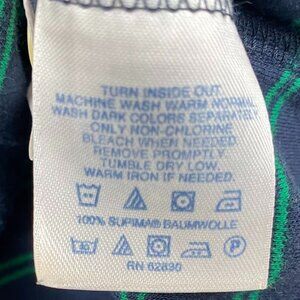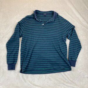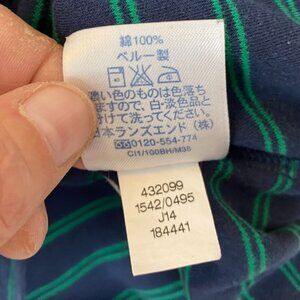 Lands End Mens Polo Shirt M 38-40 Striped Long-Sleeve Navy & Green 100% Supima