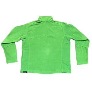 This Lands' End men's sweater in size M is perfect for casual wear or outdoor activities in fall, winter, or spring. The solid green color and mock neck add a stylish touch to this pullover, which features a 1/4 zip and breathable fabric. The fleece material is made of polyester and is machine washable. Ideal for walking, hunting, hockey, skiing, or hiking, this pullover is a great addition to any wardrobe. The sweater is in excellent used condition and is from the Polartec Aircore 100 collection.