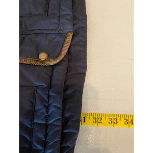 This Lands' End quilted jacket, size XXL, offers a sophisticated blend of cotton and nylon for comfortable wear. The navy color is versatile for any wardrobe, while the quilted design adds an element of warmth. Ideal for professional settings or casual outings, it ensures both style and comfort.