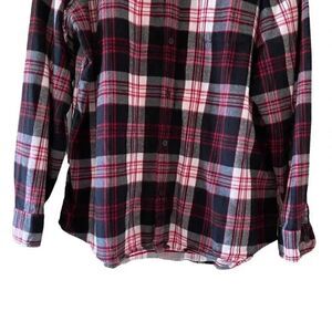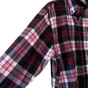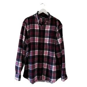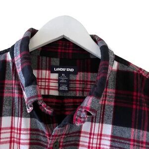 Lands’ End Men’s Red Black White Casual Button-Down Collar Adjustable Cuffs Tailored Traditional Fit Oversized Brushed Plaid Cotton Flannel Long Sleeves Cozy Soft Warm SZ XL # 1631
