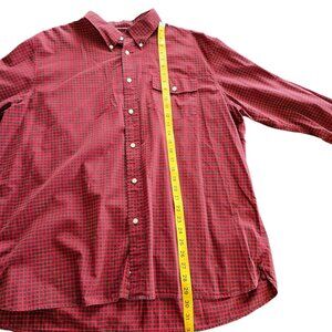 Lands End Mens Red Plaid Button-Down Shirt XL 100% Cotton Classic Fit