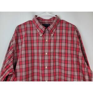 Lands End Men's Red Plaid Long Sleeve Button Up Shirt XLT 17-17.5
