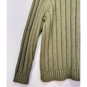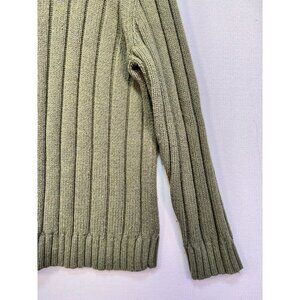 Lands' End Men's Ribbed Knit Sweater Size L Olive Green Long Sleeve Button Neck