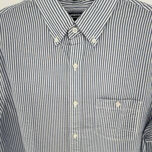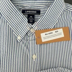 Land's End Men's Seersucker Casual Shirt Button Down Short Sleeve Blue White