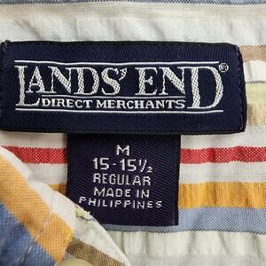 Lands End Mens Shirt Size Medium 15 15.5 Seersucker Pastel Striped Button Preppy