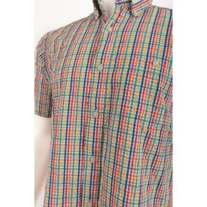 Lands' End Mens Shirt Top Size S 14 14.5 Multicolor Check Seersucker Cotton