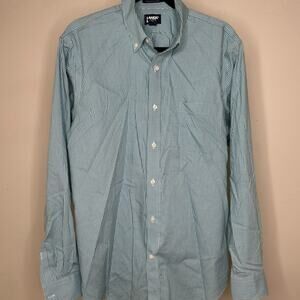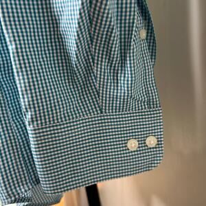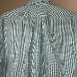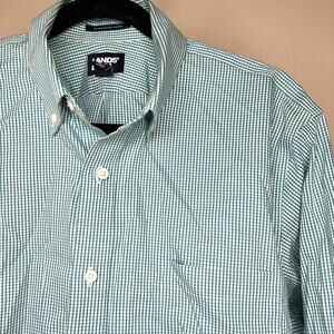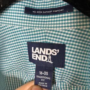 Lands End Men’s Shirt-size 16-35- teal/green long sleeve button down checkered