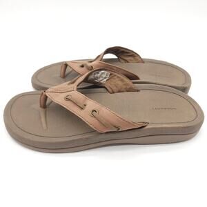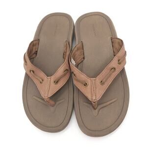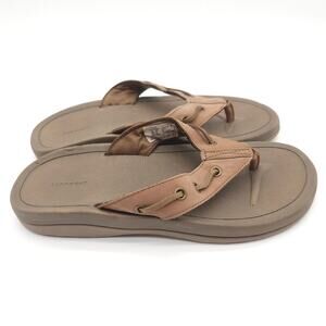 Lands End (Mens Size 8 D) Leather Flip Flop Thong Sandals Beach Brown 427927
