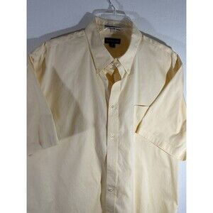 Lands End Mens Size17 Yellow Oxford Button Up Button Down No Iron Pinpoint Short Sleeve Cotton Shirt