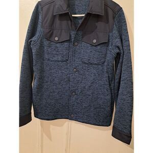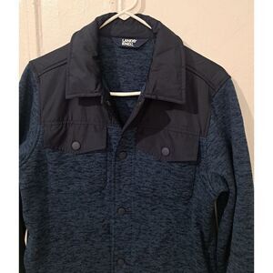 Lands End Men’s Small OEKO-TEX STANDARD sweater Blue Fleece Lined Button Front