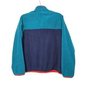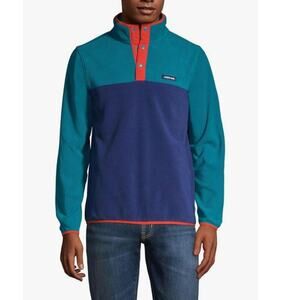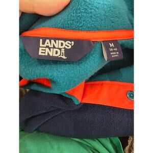 Lands End Mens Snap Neck Fleece Pullover Navy Peacock Colorblock Regular Medium