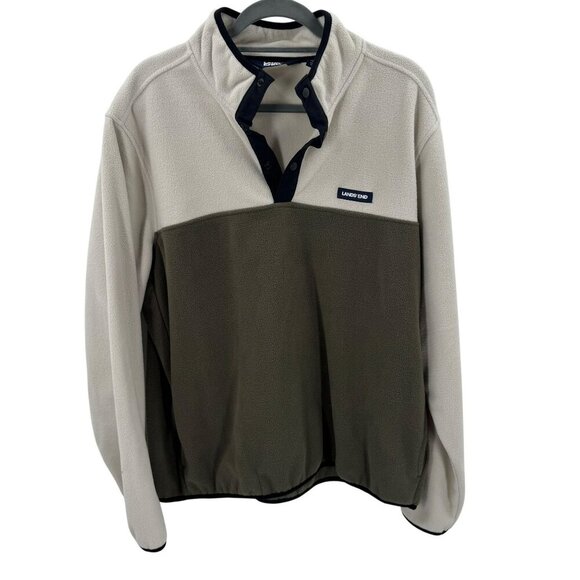 Lands End Mens Snap-T Pullover Cream/Olive Fleece XL
