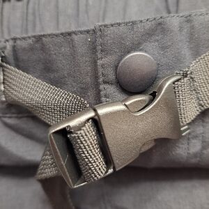 waterproof construction, mesh lining for ventability, zip fly & button closure, elastic waistband with belt closure, two front zipper pockets, two long side zipper pockets for storage, reinforced knees, elastic adjustable ankles for the perfect fit, 100% nylon