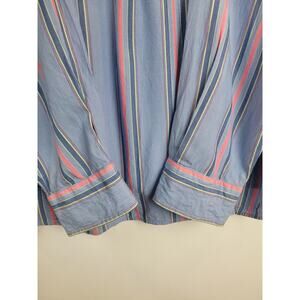 Lands End Men's Striped Button Up Shirt with Floral Flip Cuff Blue Salmon Sz XL