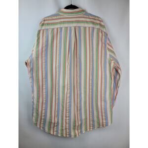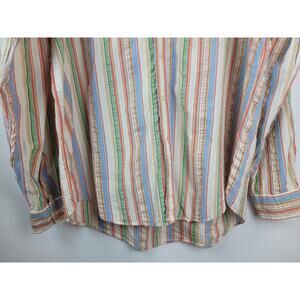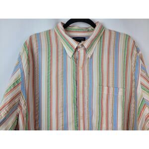Lands End Men's Striped Long Sleeve Button Up Shirt Blue Green Red Yellow Sz XL