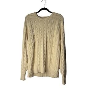 Lands End Men's Sweater Beige Large 42/44 Cable Knit Fisherman Long Sleeve