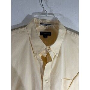 Lands End Mens Size 17 Yellow No Iron Pinpoint Oxford Short Sleeve Cotton Shirt Button Up Collared Button Down