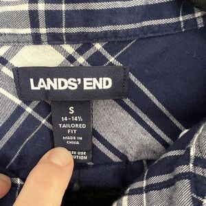 Lands End Mens Traditional Fit Shirt Stretch Blue White Plaid Pockets Size Small