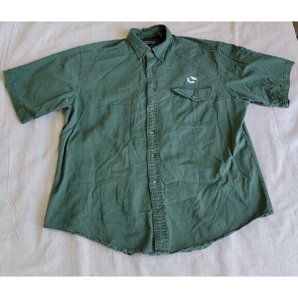 Lands End Mens XL 17 Shirt Button Up Green Logo Short Sleeve Canvas Duck Vtg 90s