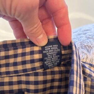 Keywords: Lands' End, Mens, XL, Button Down Shirt, Long Sleeve, Gingham, Checkered, Regular Fit, Casual Shirt, Business Casual, Men's Fashion, Blue Beige Shirt, Collared Shirt