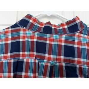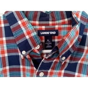 Lands' End Men's XL Button-Front Traditional Fit Red White Blue Plaid Shirt EUC