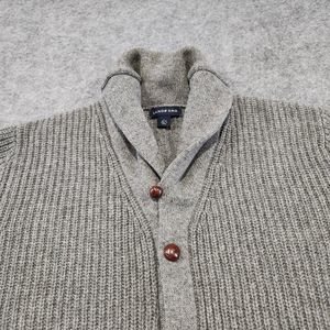 Lands End Mens XL Lambs Wool Knit Cardigan Shawl Leather Elbow Patch Sweater
