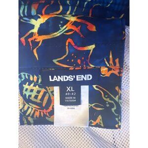 Lands End Mens XL Swim Trunks Ocean Print Polyester Summer Colorful