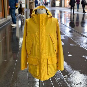 Lands End Mens Yellow Hooded Rain Jacket Waterproof Coastal Gorpcore Large