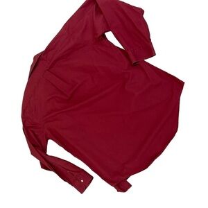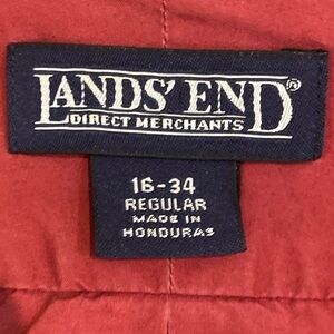 This men’s Land’s End dusty cranberry button down shirt. Envelop hem. Contrast buttons. Pleat in back. Chest pocket. Made in Honduras. Made of 100% cotton. Size 16 34 regular