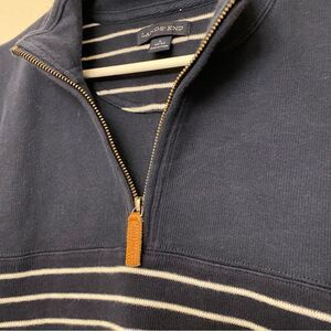 Lands' End Men's navy blue striped Rib Quarter Zip cotton Sweater preppy L