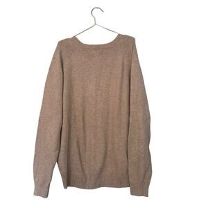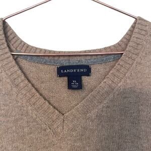 Lands' End Merino Wool Tan V-Neck Sweater - Size XL
