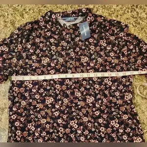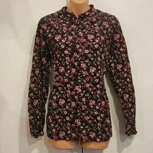 Lands End Micro Corduroy 1/4 Button Multicolor Floral Long Sleeve Blouse Top