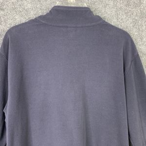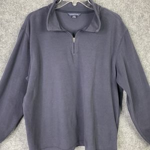 Lands End Micro Fleece 1/4 Zip Top Men XL Mock Neck Navy Blue Elastic Cuffs