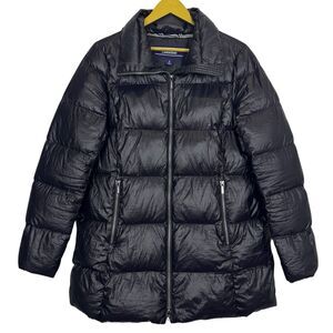 Lands End Mid Length Down Filled Coat Size S Black Quilted Puffer Jacket