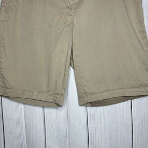 Lands' End Mid Rise Chino Shorts Women Sz 16W (39 x 11.5) Khaki Stretch Solid Pockets, 98% cotton, 2% spandex. These shorts are in excellent condition.