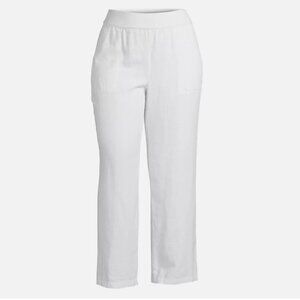 Lands End Mid Rise white linen pull on wide leg pants. Size 18
